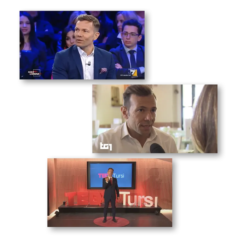 È stato intervistato dai più prestigiosi programmi televisivi, testate giornalistiche e podcast.